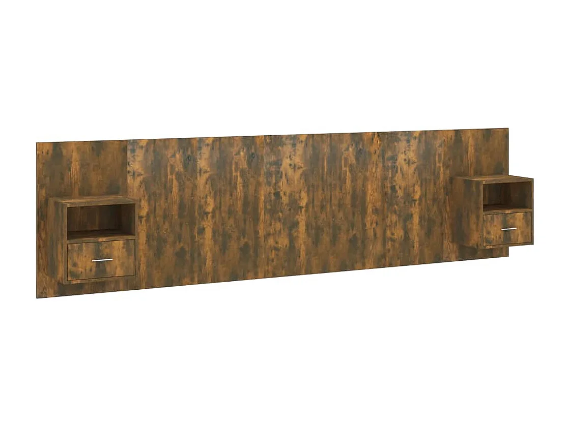 Mueble cabecero | Cabezal de cama | Cabecero de cama y mesitas madera contrachapada roble ahumado