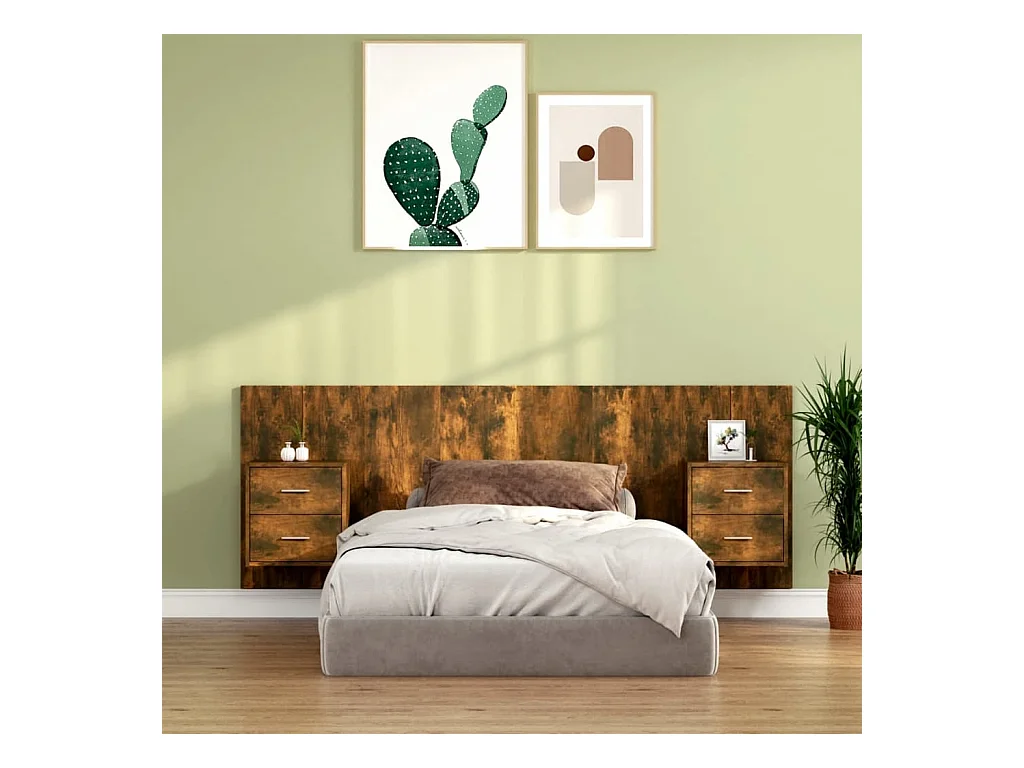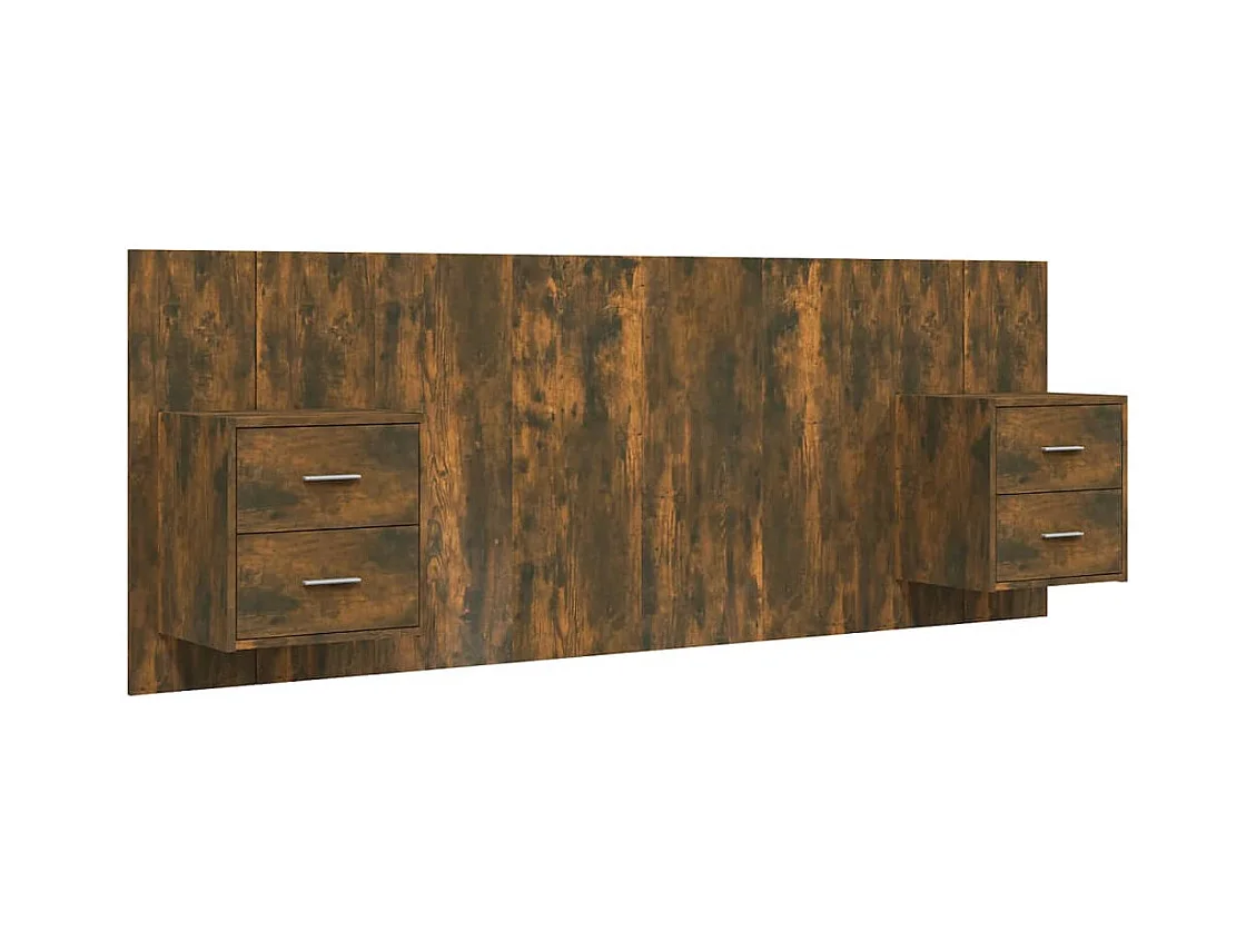 Cabecero de Cama | Cabezal de cama | Mueble de cabecero con mesitas madera contrachapada roble ahumado