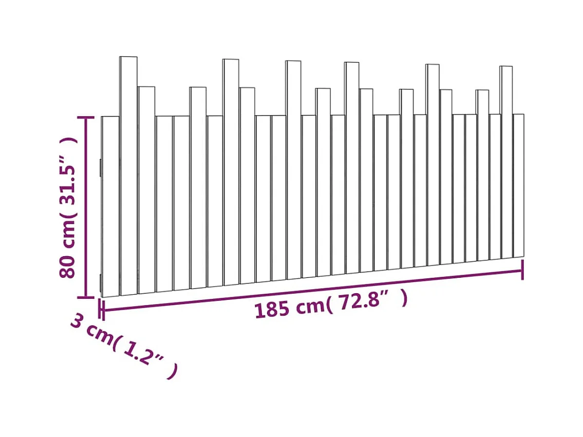 Cabecero de Cama | Cabezal de cama | Mueble de cabecero de pared madera maciza de pino 185x3x80 cm