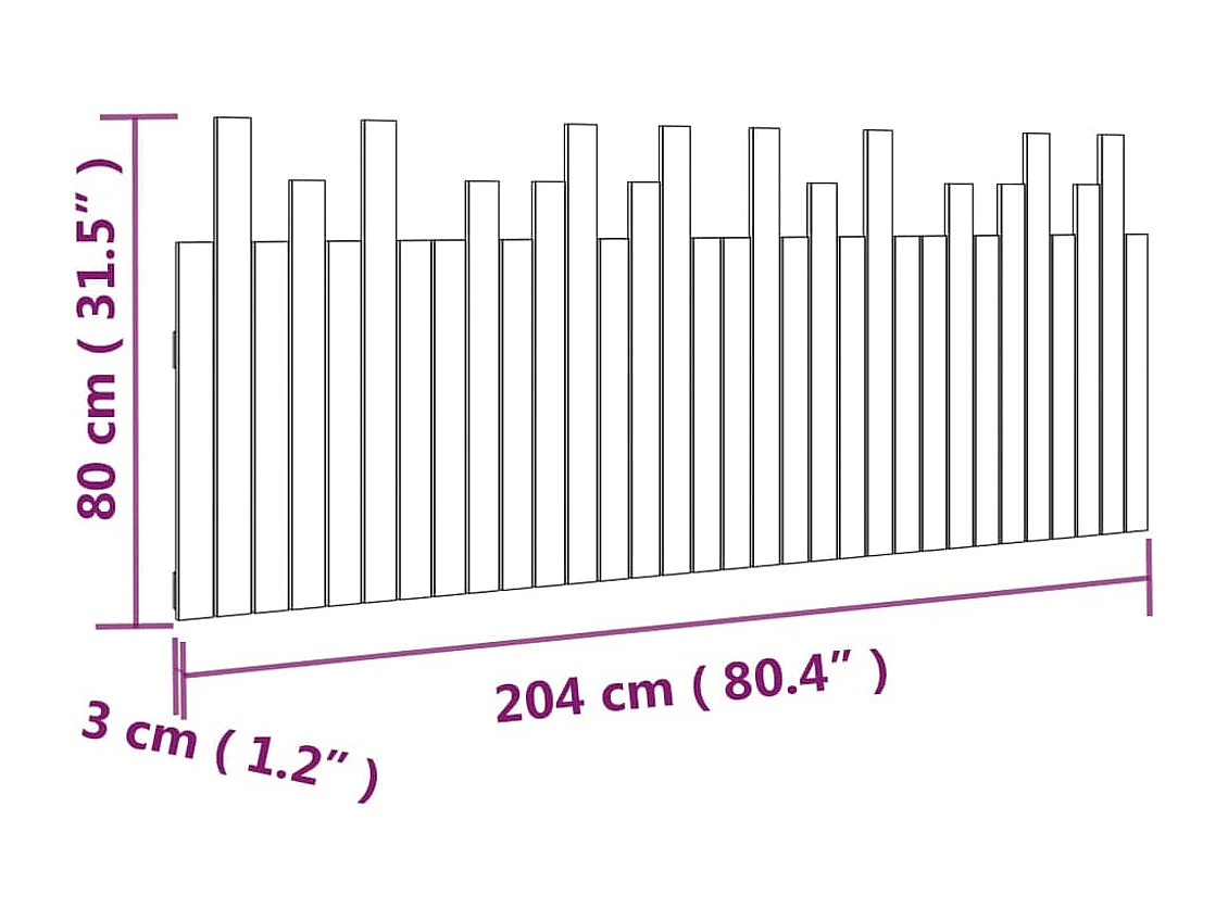 Cabecero de Cama | Cabezal de cama | Mueble de cabecero de pared madera maciza de pino 204x3x80 cm