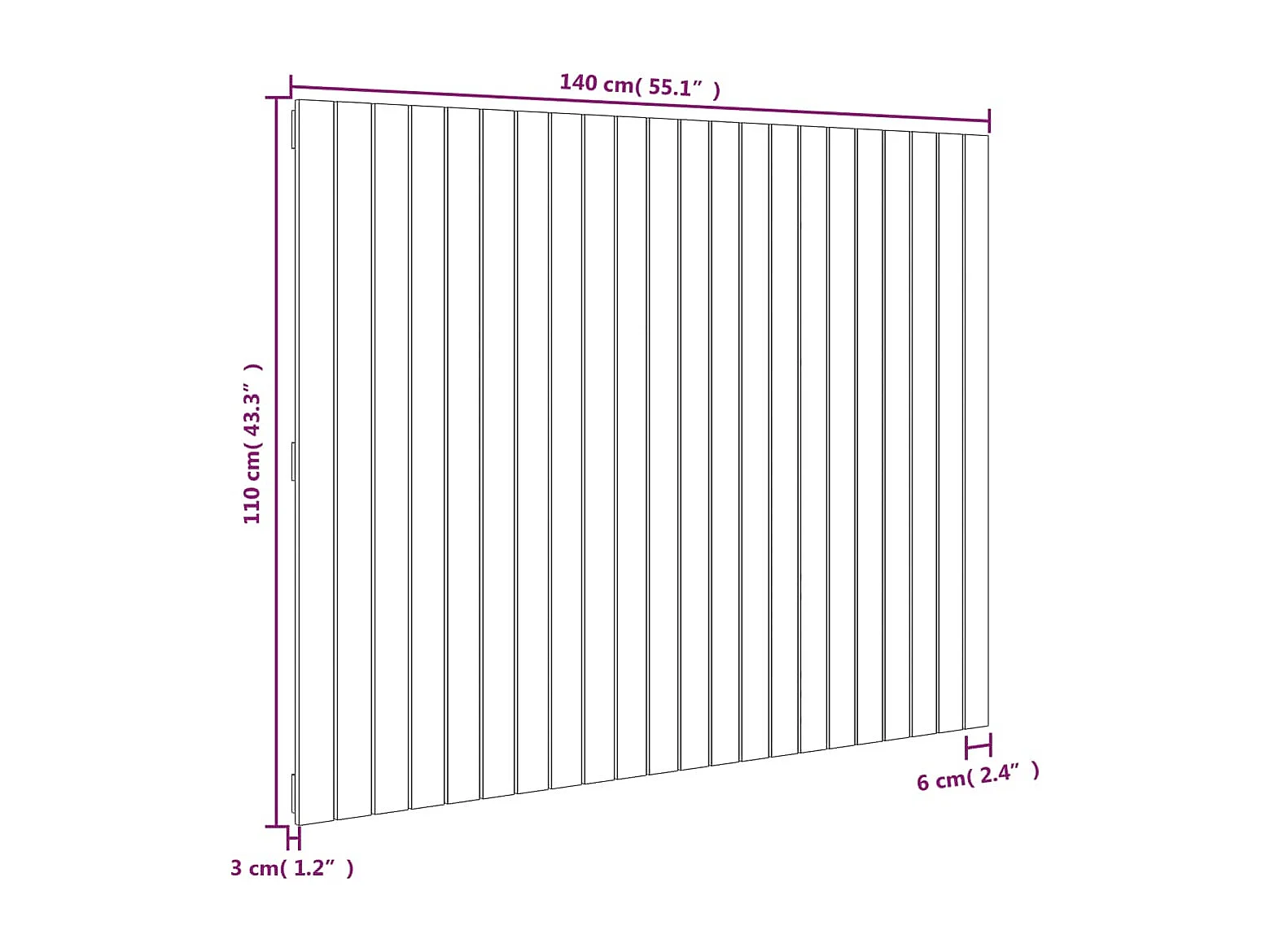 Cabecero de Cama | Cabezal de cama | Mueble de cabecero de pared madera maciza pino blanco 140x3x110cm