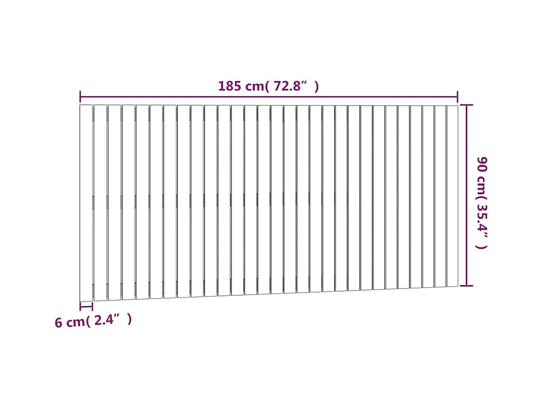 Cabecero de Cama | Cabezal de cama | Mueble de cabecero de pared madera maciza pino blanco 185x3x90 cm