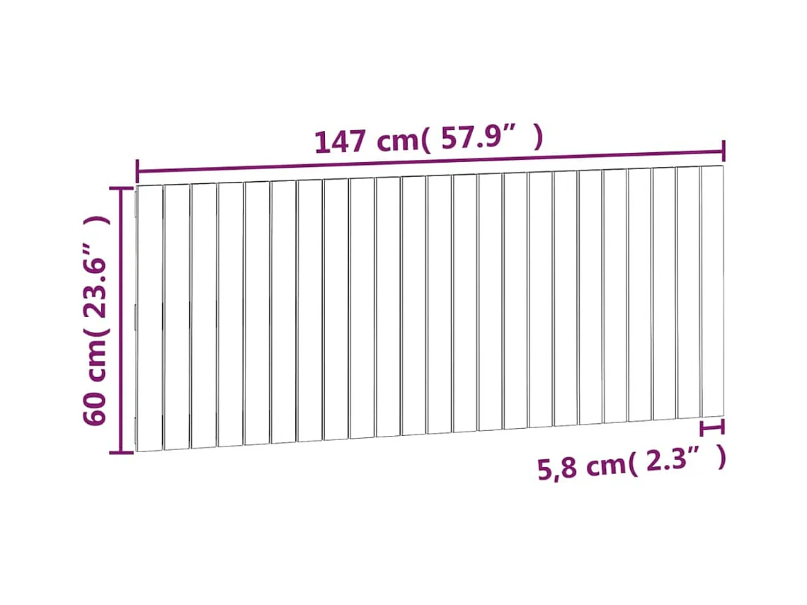 Cabecero de Cama | Cabezal de cama | Mueble de cabecero de pared madera maciza pino gris 146,5x3x110cm