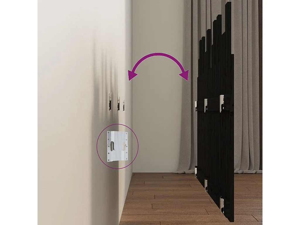Cabecero de Cama | Cabezal de cama | Mueble de cabecero de pared madera maciza pino negro 95,5x3x80 cm