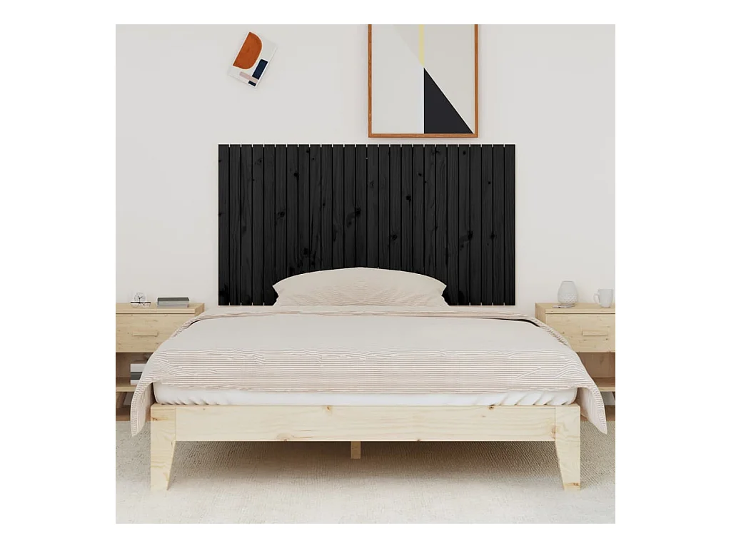 Cabecero de Cama | Cabezal de cama | Mueble de cabecero de pared madera maciza pino negro 147x3x90 cm