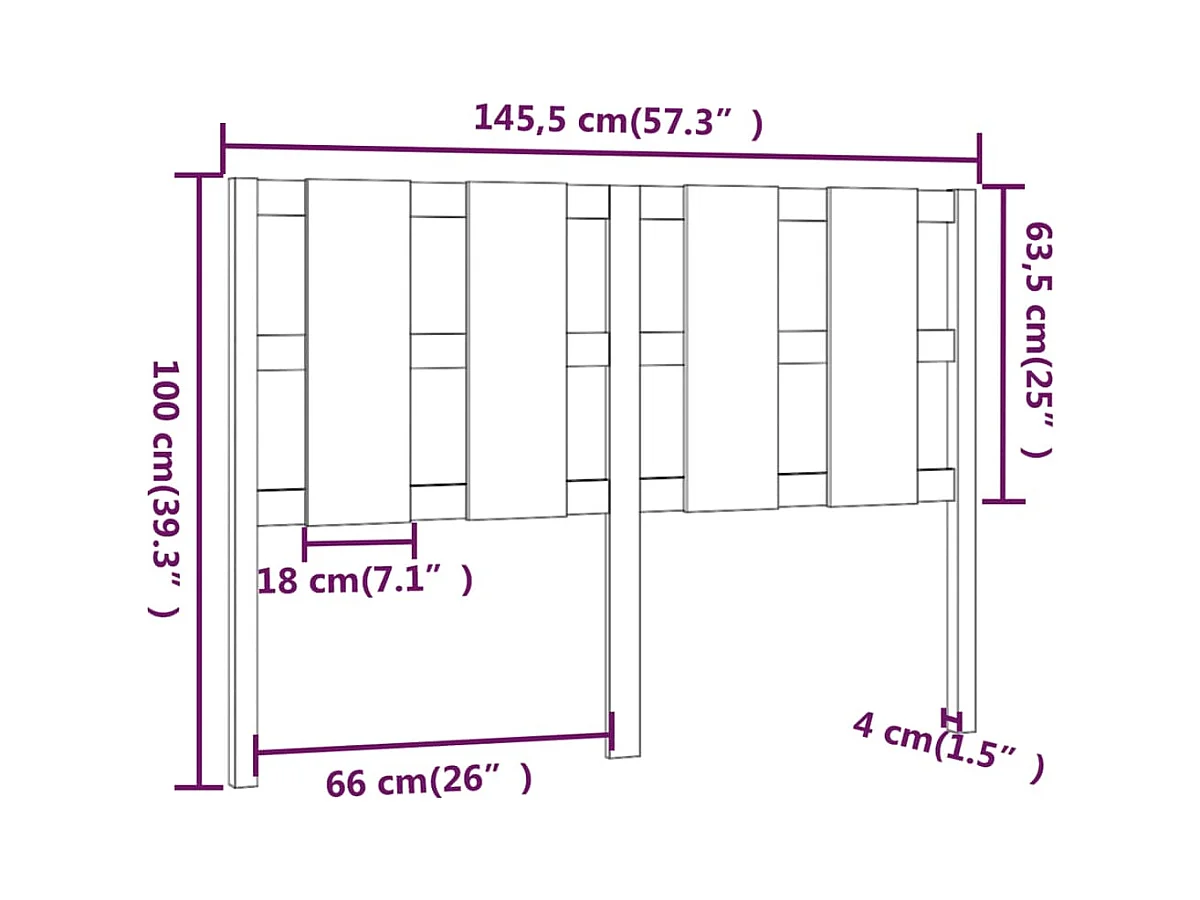 Cabecero de Cama | Cabezal de cama | Mueble de cabecero madera maciza de pino 145,5x4x100 cm