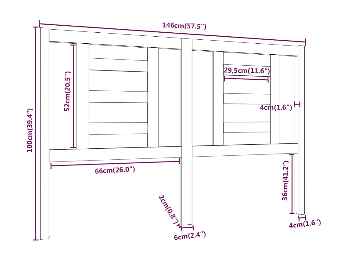Cabecero de Cama | Cabezal de cama | Mueble de cabecero madera maciza de pino 146x4x100 cm