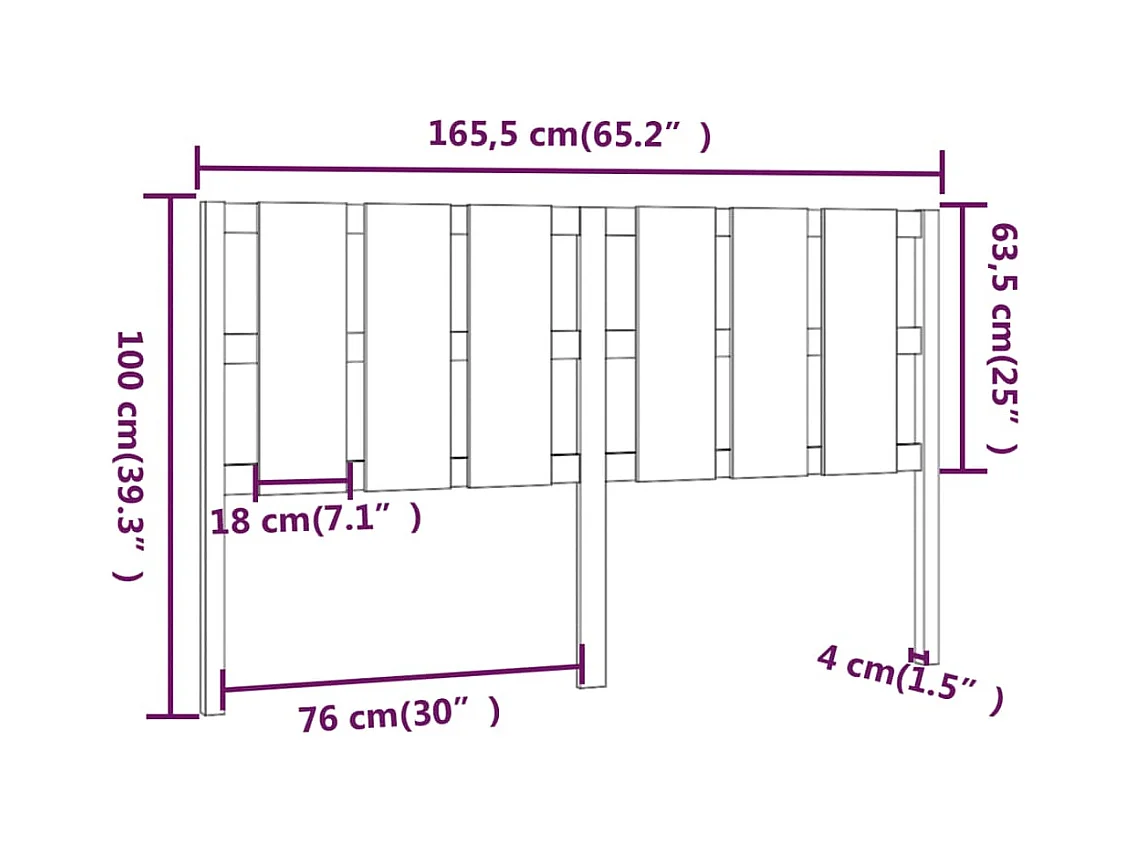 Cabecero de Cama | Cabezal de cama | Mueble de cabecero madera maciza de pino 165,5x4x100 cm