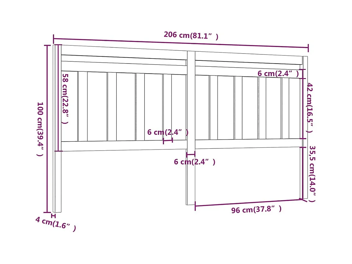 Cabecero de Cama | Cabezal de cama | Mueble de cabecero madera maciza de pino 206x4x100 cm