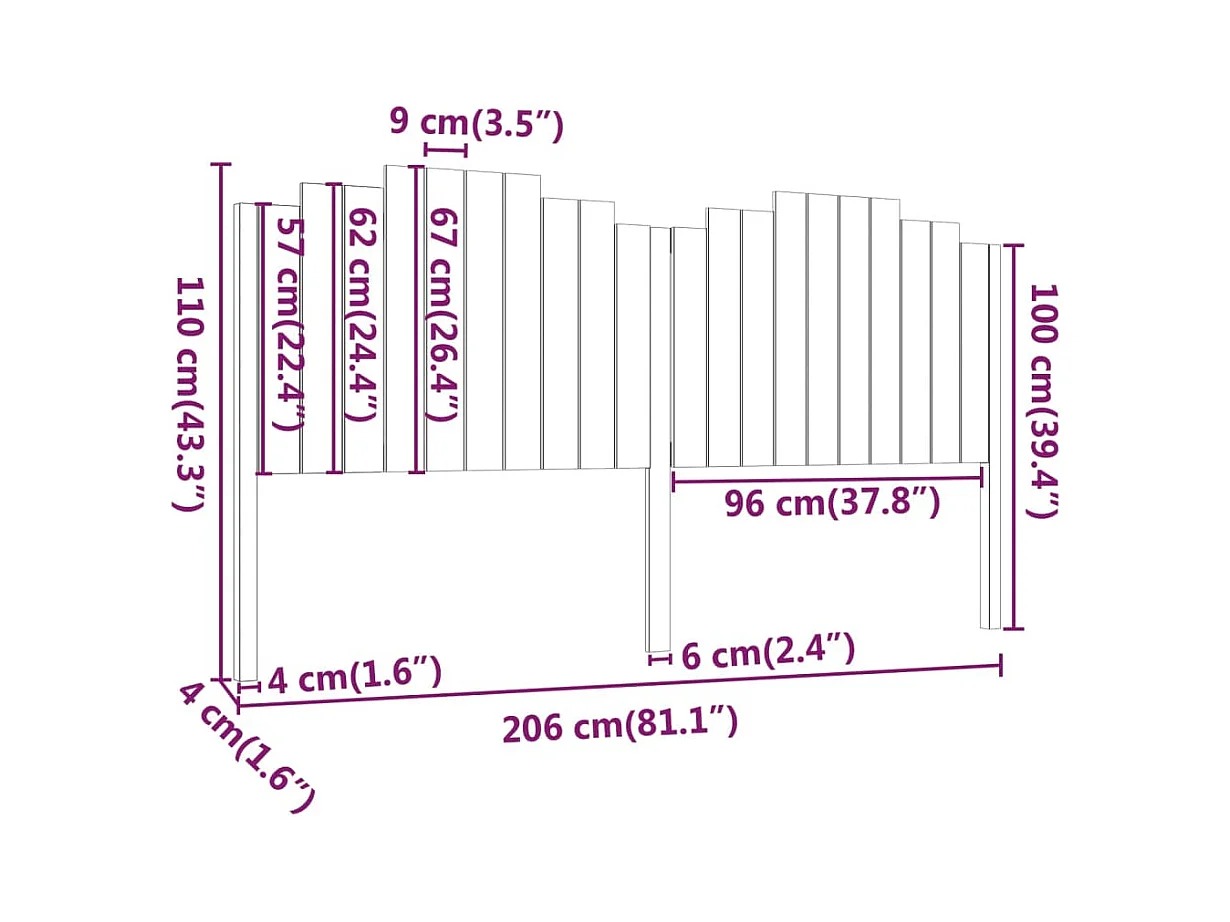 Cabecero de Cama | Cabezal de cama | Mueble de cabecero madera maciza de pino 206x4x110 cm