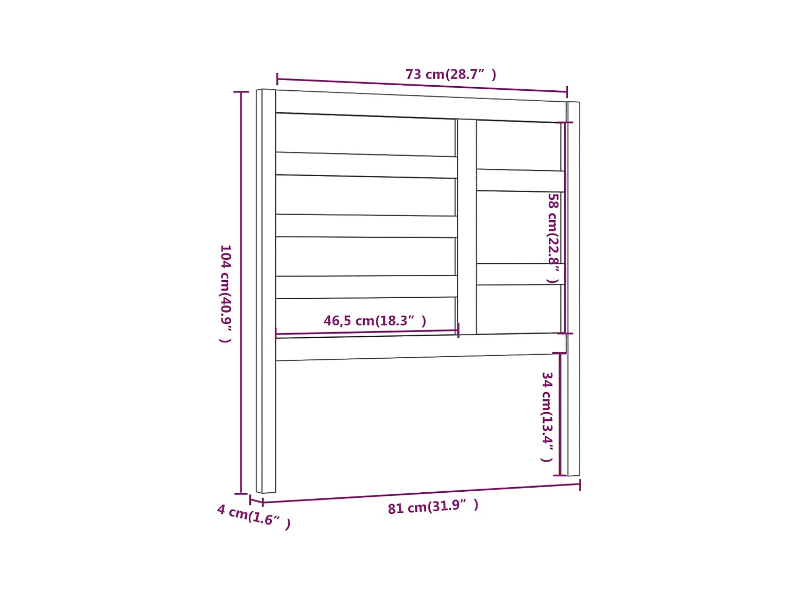 Cabecero de Cama | Cabezal de cama | Mueble de cabecero madera maciza de pino 81x4x104 cm