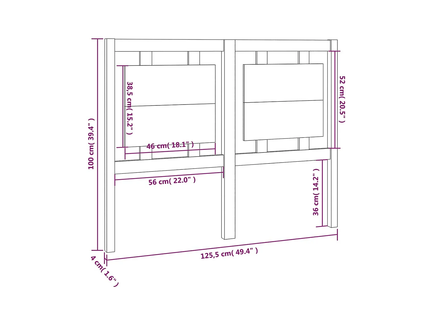 Cabecero de Cama | Cabezal de cama | Mueble de cabecero madera maciza de pino blanco 126x4x100 cm