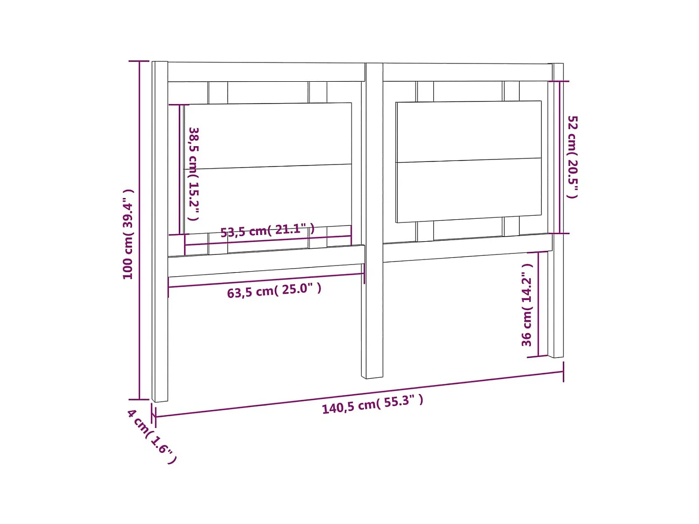 Cabecero de Cama | Cabezal de cama | Mueble de cabecero madera maciza de pino blanco 140,5x4x100 cm