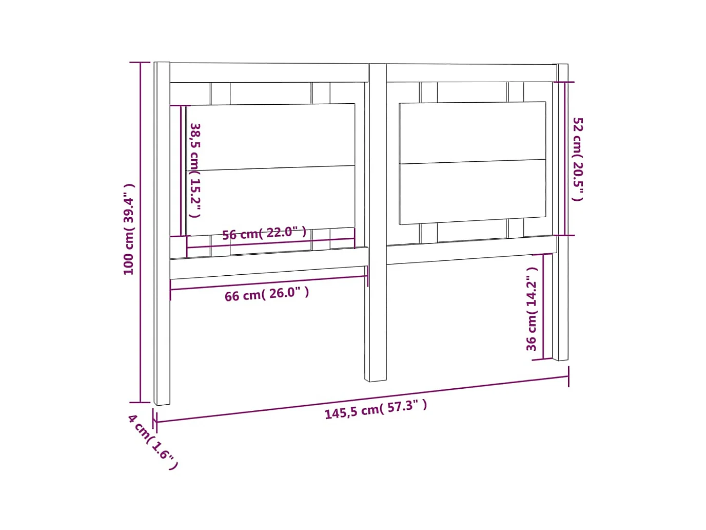 Cabecero de Cama | Cabezal de cama | Mueble de cabecero madera maciza de pino blanco 146x4x100 cm