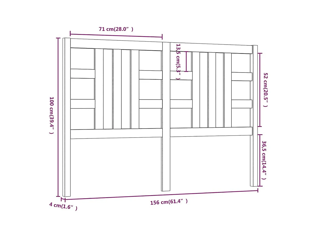 Cabecero de Cama | Cabezal de cama | Mueble de cabecero madera maciza de pino blanco 156x4x100 cm