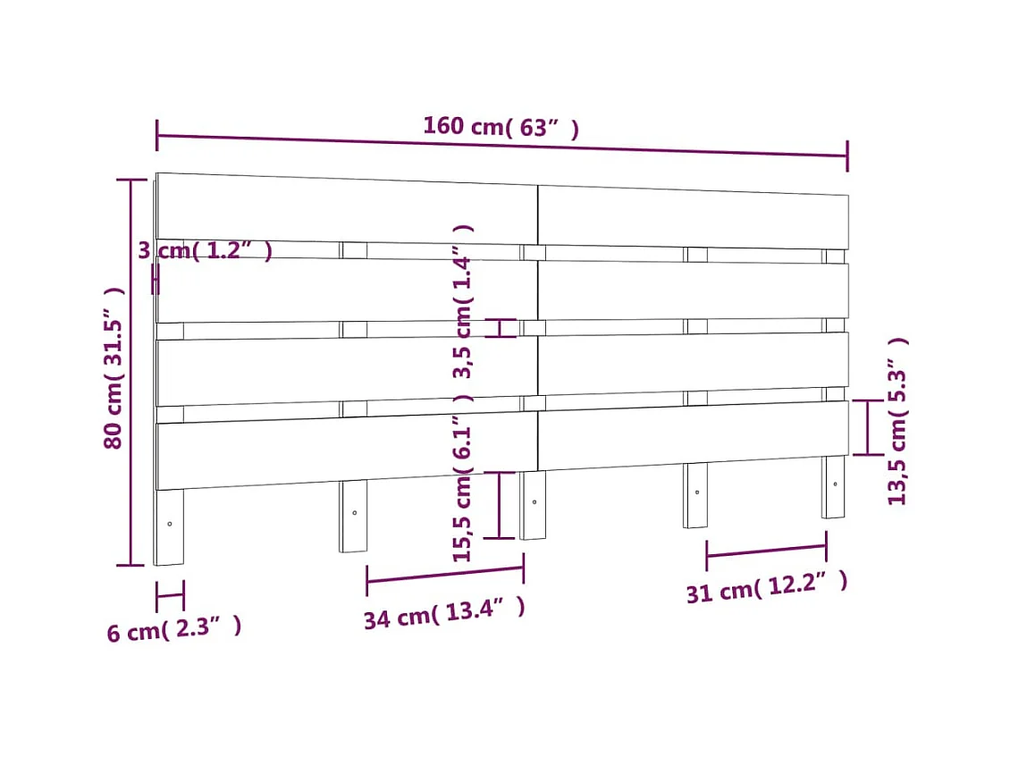 Cabecero de Cama | Cabezal de cama | Mueble de cabecero madera maciza de pino blanco 160x3x80 cm