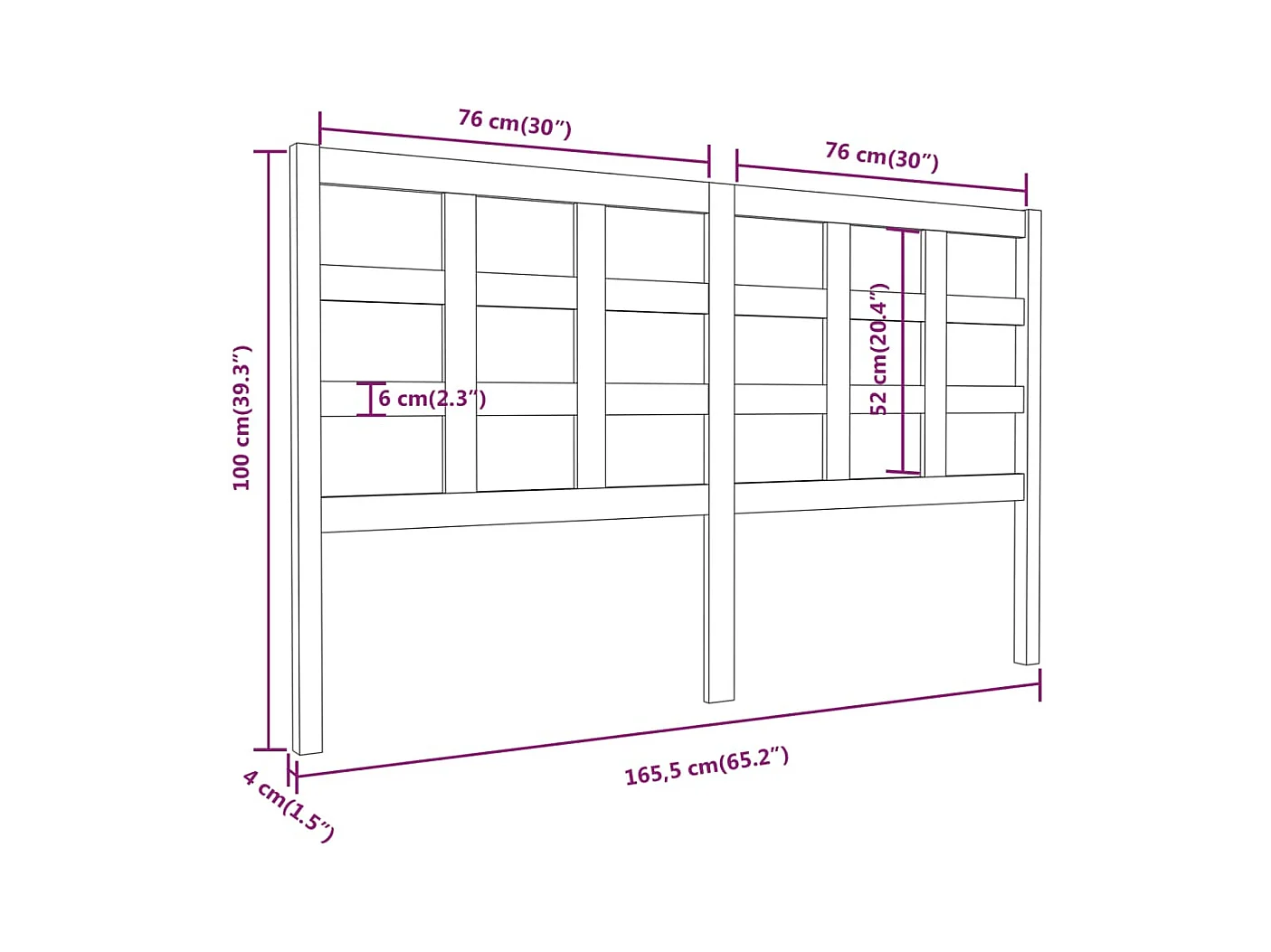 Cabecero de Cama | Cabezal de cama | Mueble de cabecero madera maciza de pino blanco 165,5x4x100 cm