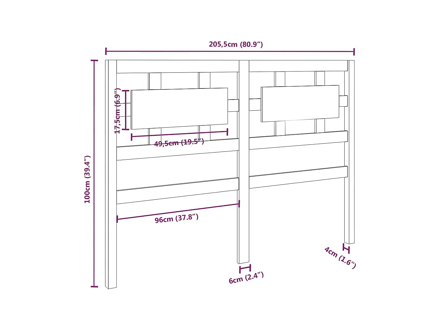 Cabecero de Cama | Cabezal de cama | Mueble de cabecero madera maciza de pino blanco 205,5x4x100 cm