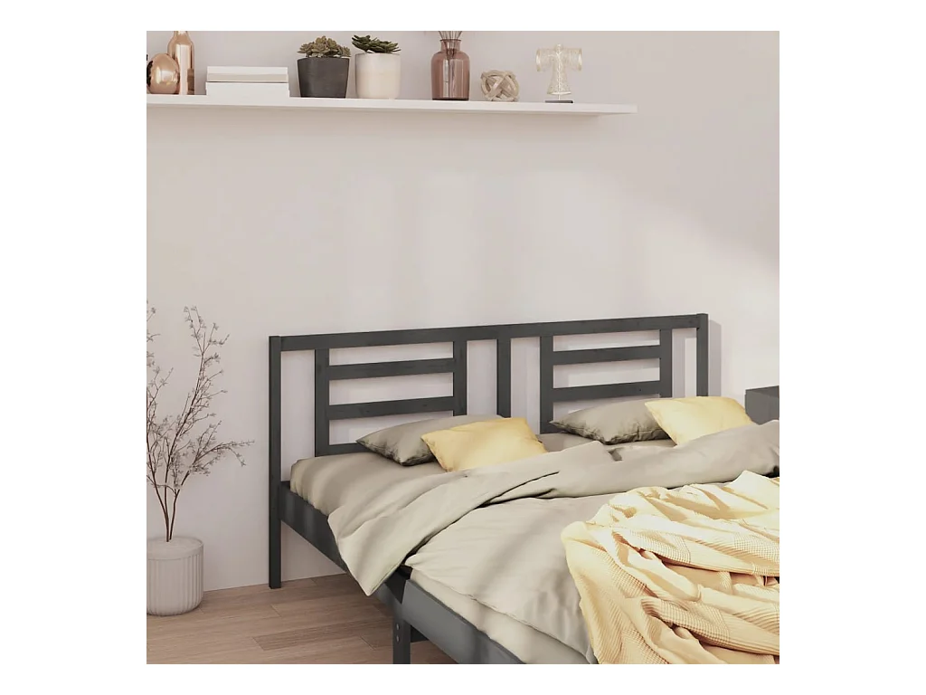 Cabecero de Cama | Cabezal de cama | Mueble de cabecero madera maciza de pino gris 141x4x100 cm