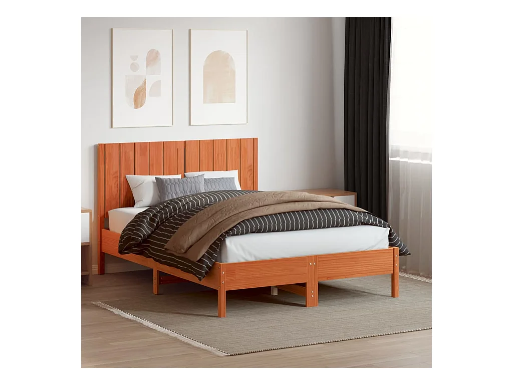 Cabecero de Cama | Cabezal de cama | Mueble de cabecero madera maciza de pino marrón cera 135 cm