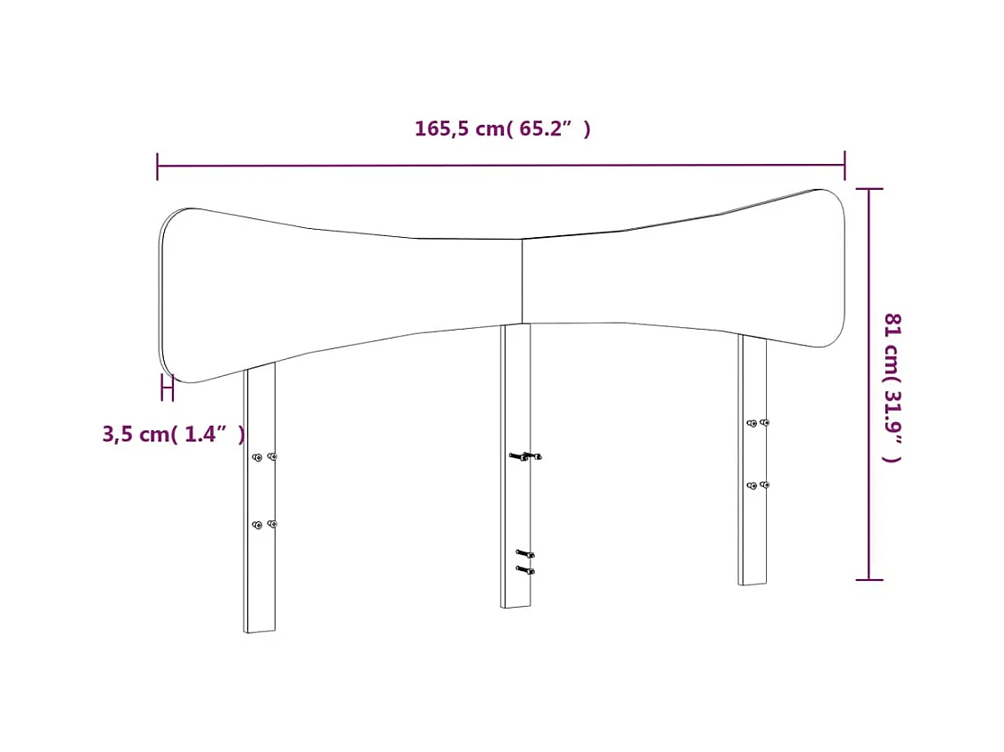 Cabecero de Cama | Cabezal de cama | Mueble de cabecero madera maciza de pino 163,5x3x81 cm