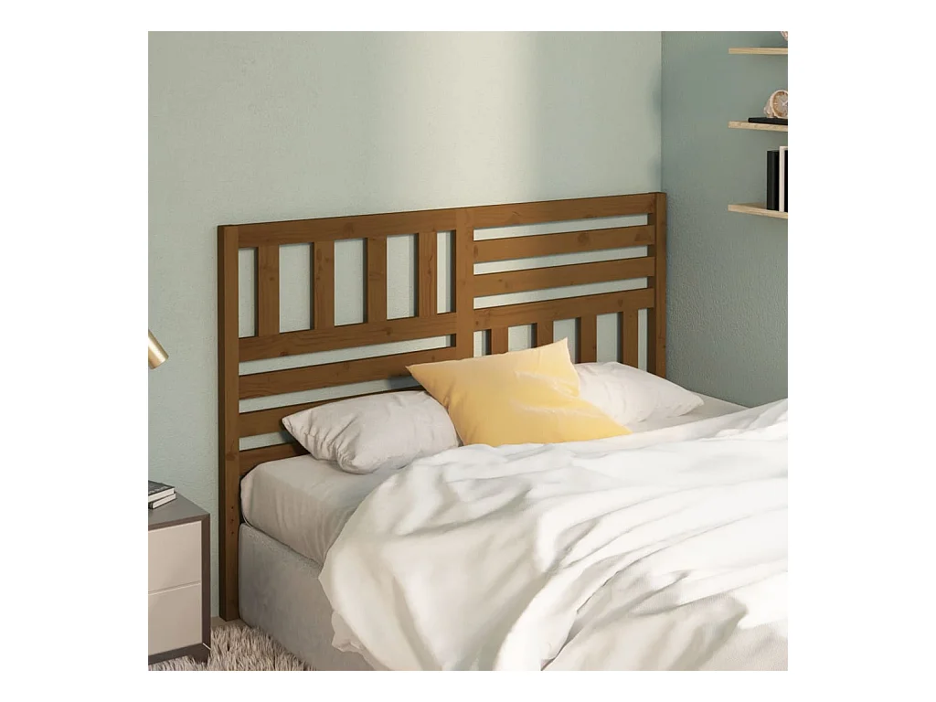 Cabecero de Cama | Cabezal de cama | Mueble de cabecero madera maciza de pino marrón miel 141x4x100 cm