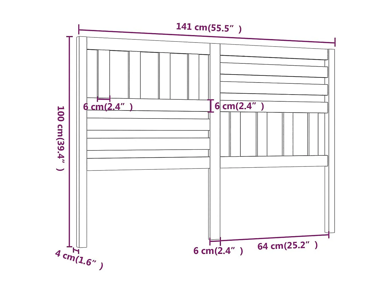 Cabecero de Cama | Cabezal de cama | Mueble de cabecero madera maciza de pino 141x4x100 cm