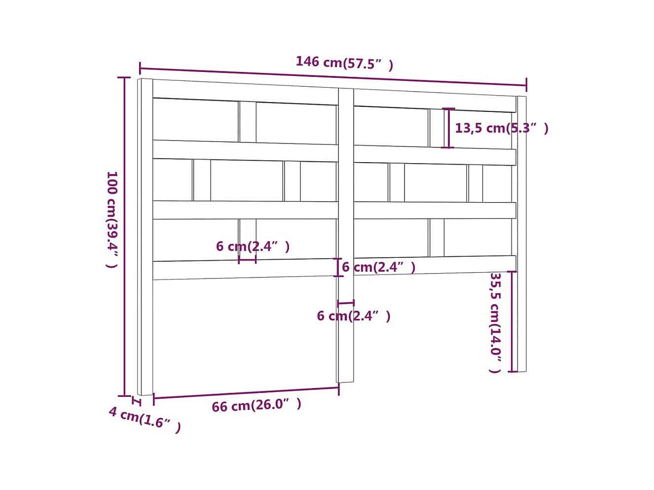Cabecero de Cama | Cabezal de cama | Mueble de cabecero madera maciza de pino 146x4x100 cm