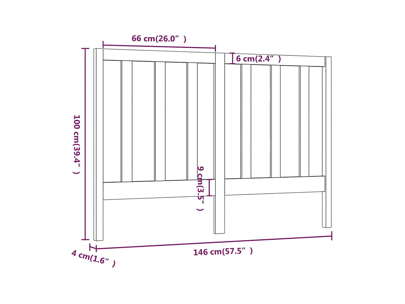 Cabecero de Cama | Cabezal de cama | Mueble de cabecero madera maciza de pino 146x4x100 cm