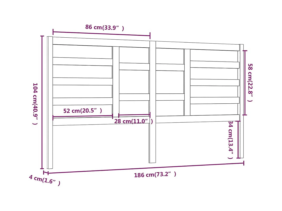 Cabecero de Cama | Cabezal de cama | Mueble de cabecero madera maciza de pino 141x4x104 cm
