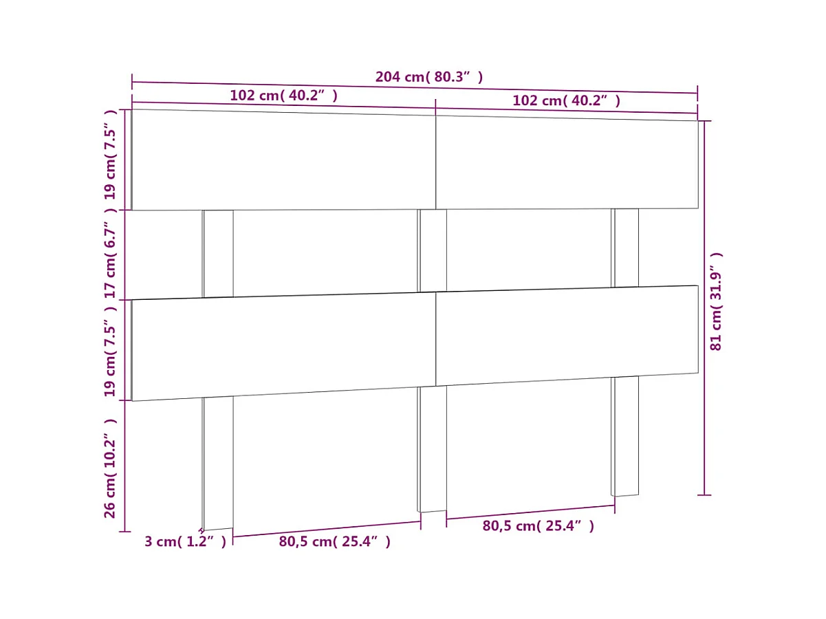 Cabecero de Cama | Cabezal de cama | Mueble de cabecero de pared madera maciza de pino 204x3x80 cm
