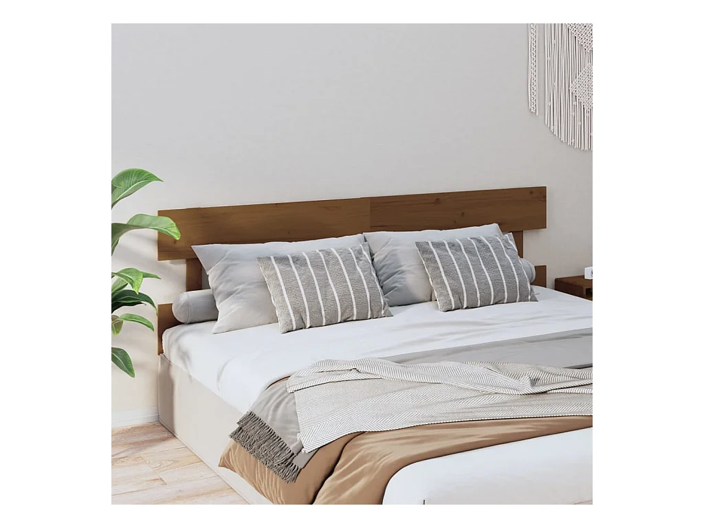 Cabecero de Cama | Cabezal de cama | Mueble de cabecero madera maciza de pino marrón miel 183,5x3x81cm