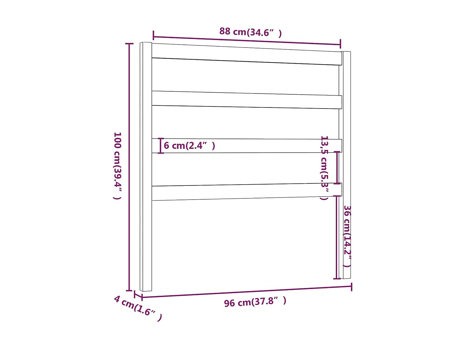 Cabecero de Cama | Cabezal de cama | Mueble de cabecero madera maciza de pino 96x4x100 cm