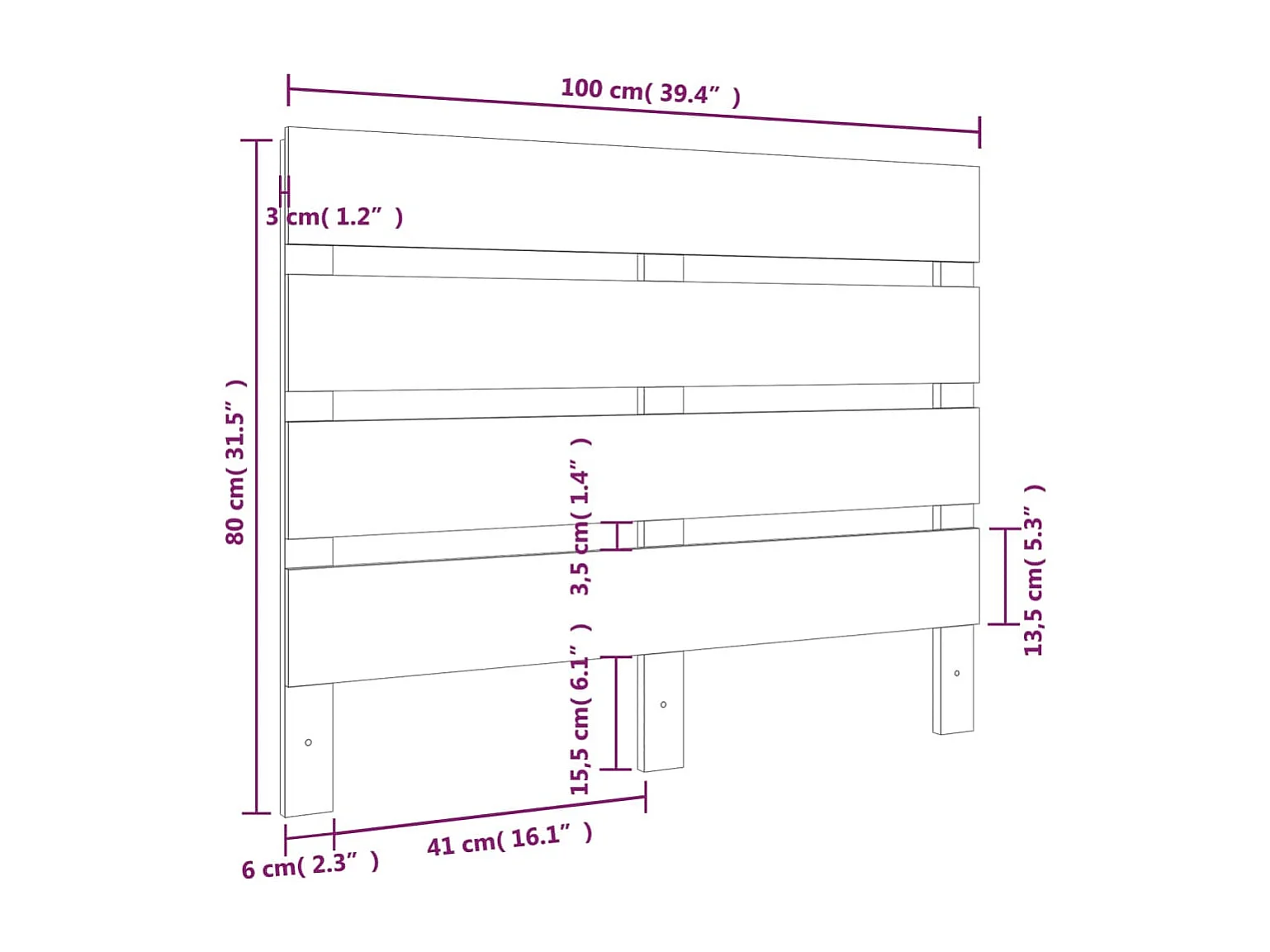 Cabecero de Cama | Cabezal de cama | Mueble de cabecero madera maciza de pino negro 100x3x80 cm