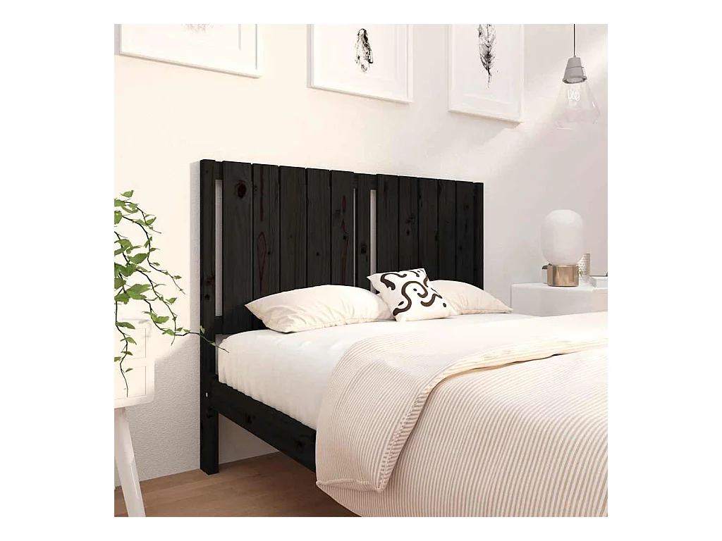 Cabecero de Cama | Cabezal de cama | Mueble de cabecero madera maciza de pino negro 106x4x100 cm