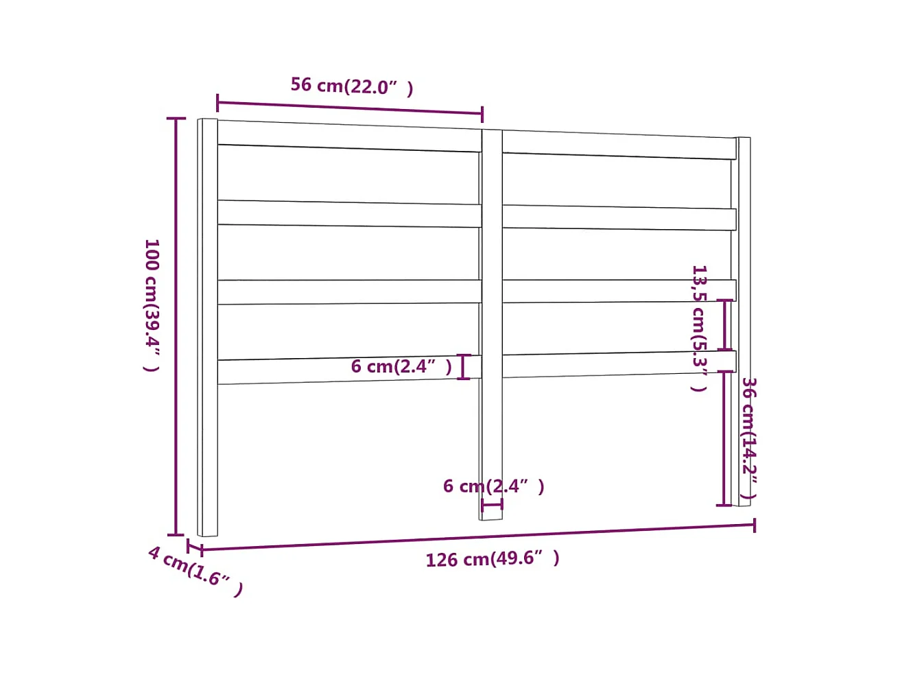 Cabecero de Cama | Cabezal de cama | Mueble de cabecero madera maciza de pino negro 126x4x100 cm