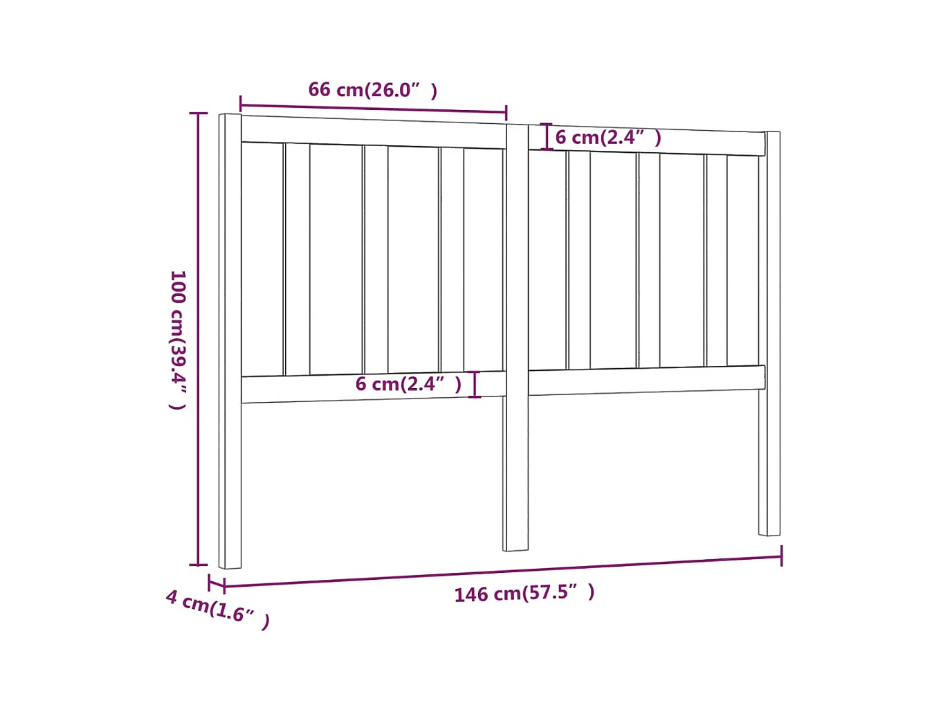 Cabecero de Cama | Cabezal de cama | Mueble de cabecero madera maciza de pino negro 146x4x100 cm