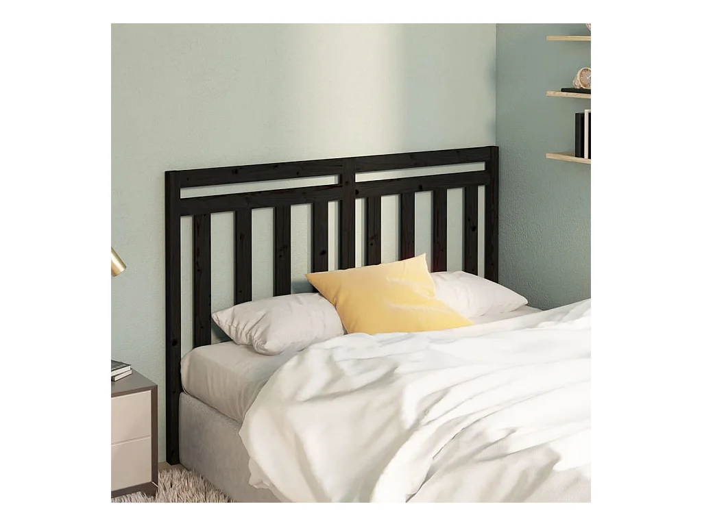 Cabecero de Cama | Cabezal de cama | Mueble de cabecero madera maciza de pino negro 141x4x100 cm