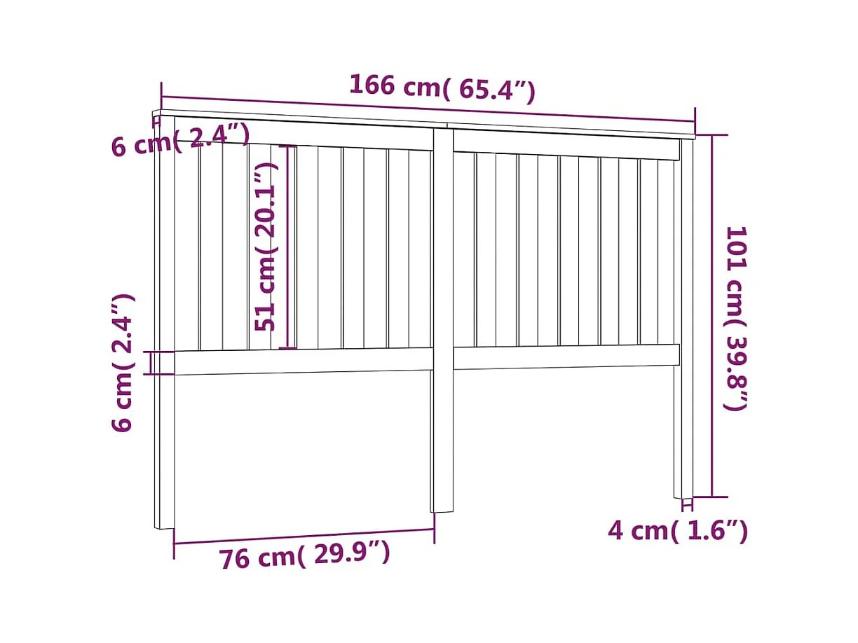 Cabecero de Cama | Cabezal de cama | Mueble de cabecero madera maciza de pino negro 166x4x100 cm
