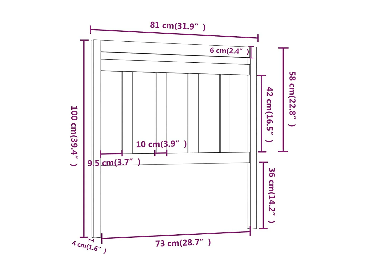 Cabecero de Cama | Cabezal de cama | Mueble de cabecero madera maciza de pino negro 81x4x100 cm