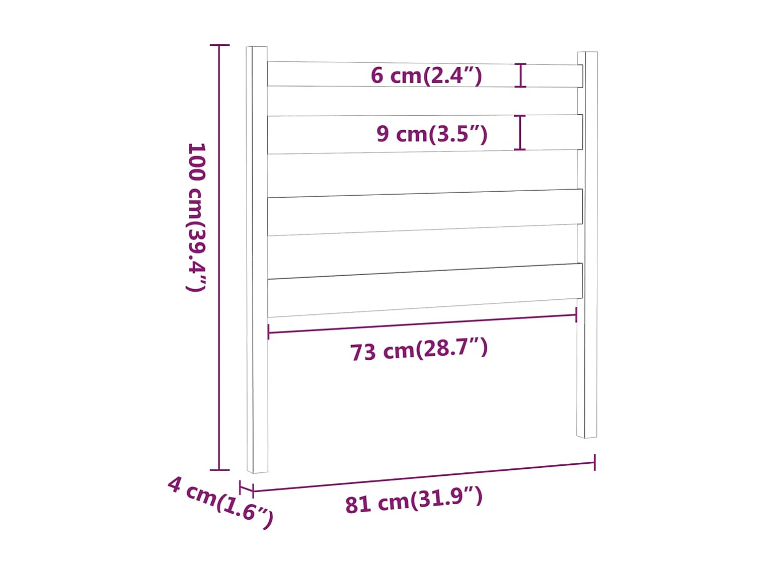 Cabecero de Cama | Cabezal de cama | Mueble de cabecero madera maciza de pino negro 81x4x100 cm