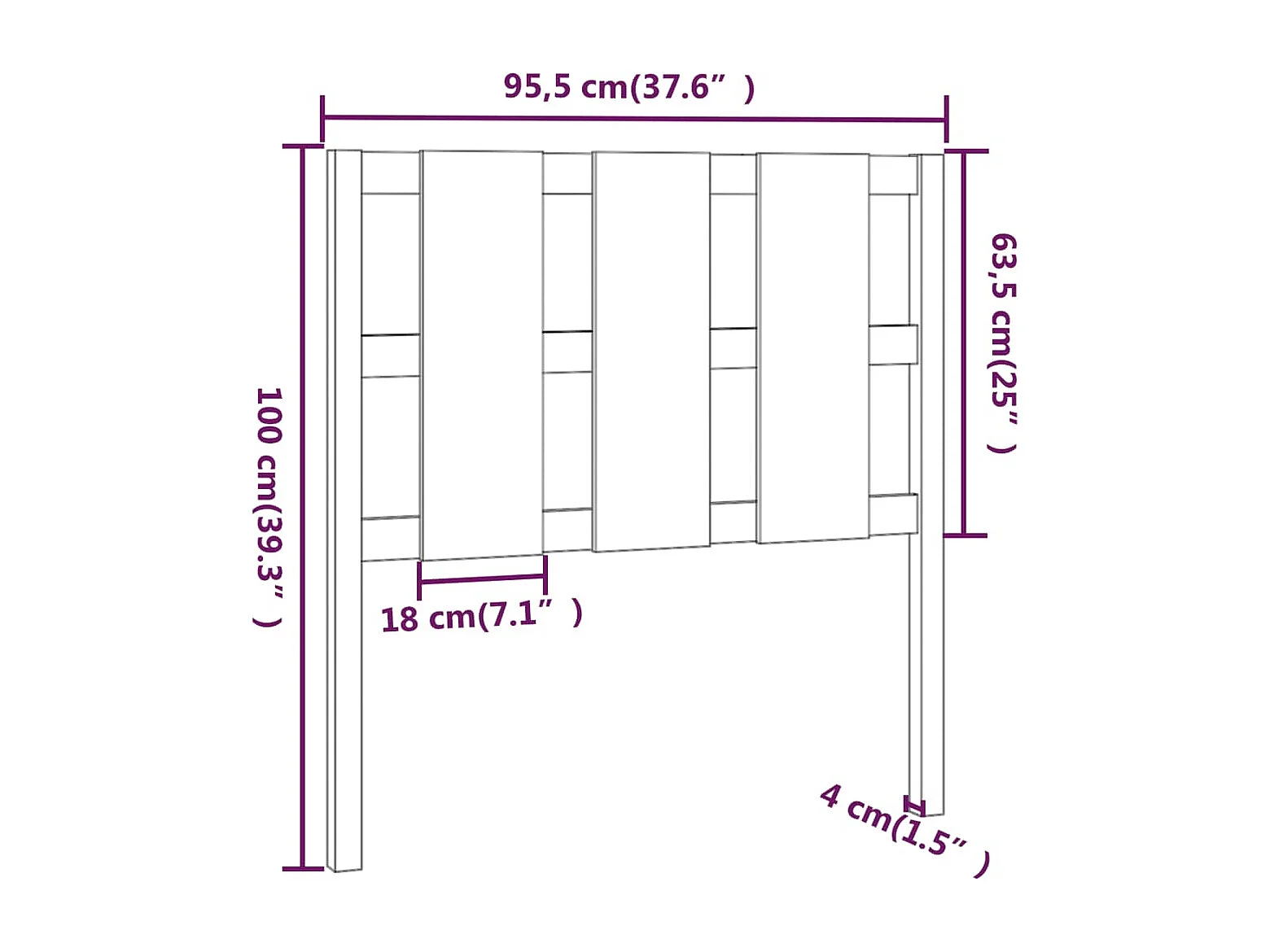 Cabecero de Cama | Cabezal de cama | Mueble de cabecero madera maciza de pino negro 95,5x4x100 cm