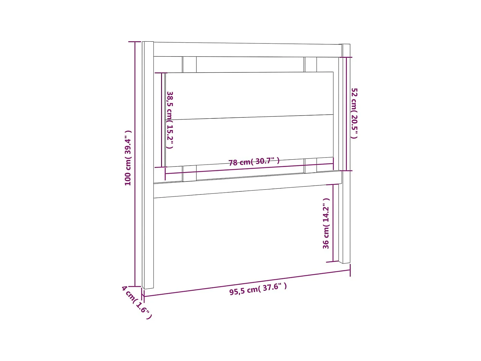 Cabecero de Cama | Cabezal de cama | Mueble de cabecero madera maciza de pino negro 95,5x4x100 cm