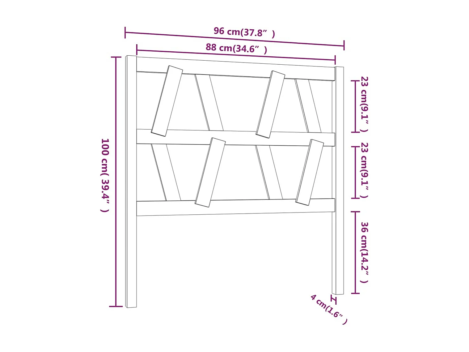 Cabecero de Cama | Cabezal de cama | Mueble de cabecero madera maciza de pino negro 96x4x100 cm