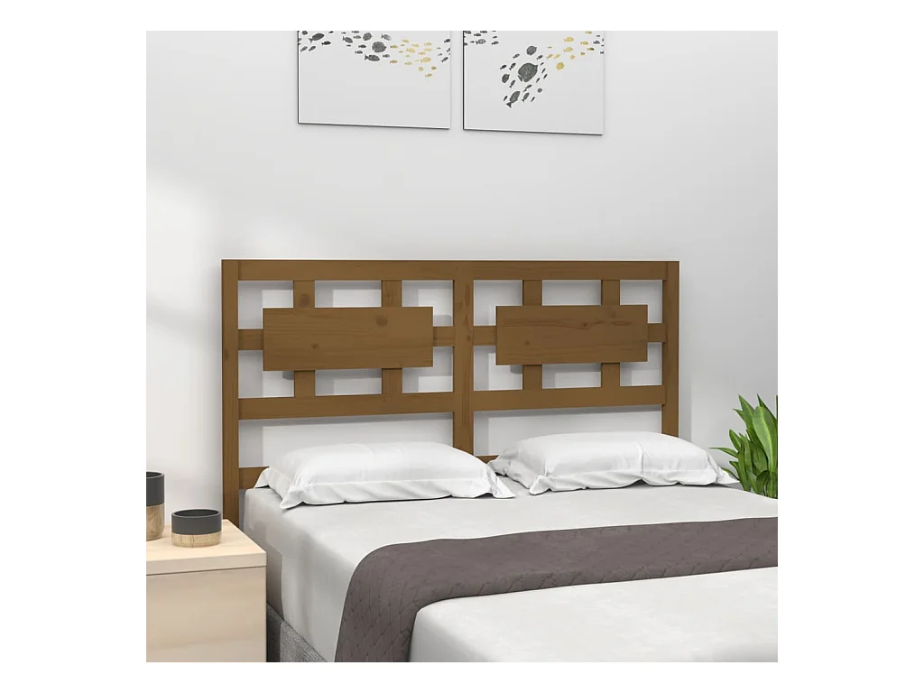 Cabecero de Cama | Cabezal de cama | Mueble de cabecero madera maciza de pino marrón miel 146x4x100 cm
