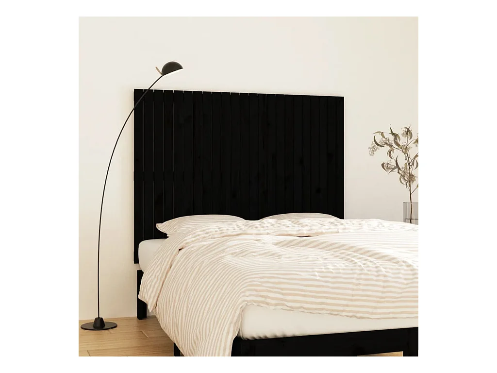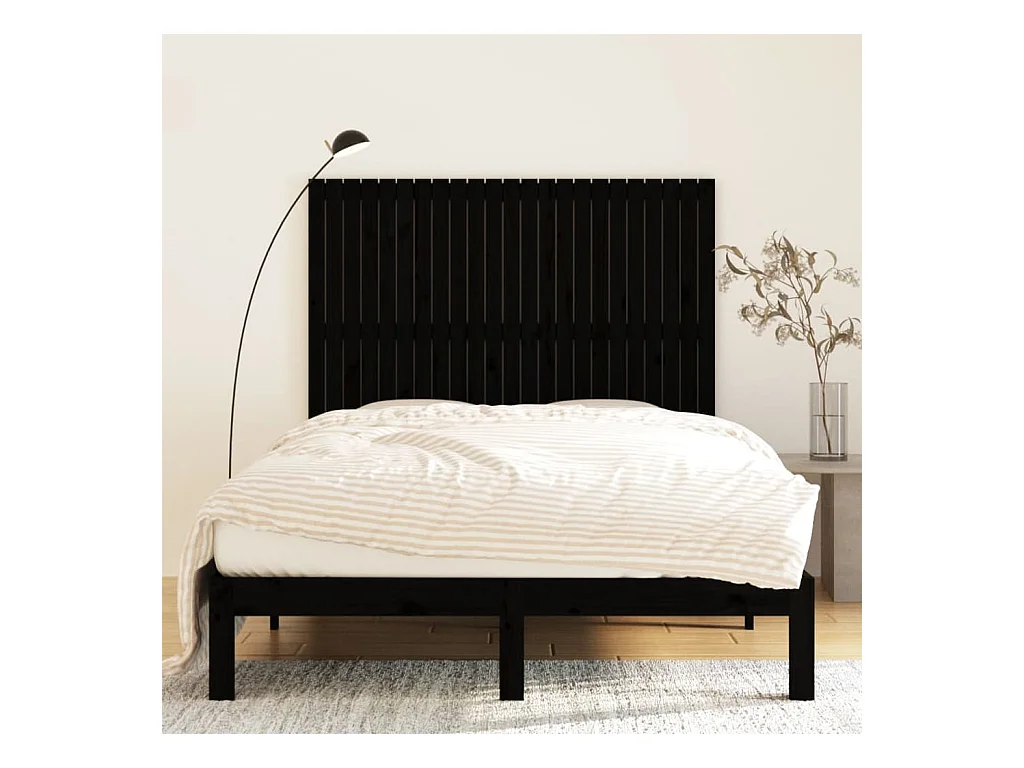 Cabecero de Cama | Cabezal de cama | Mueble de cabecero de pared madera maciza pino negro 147x3x90 cm