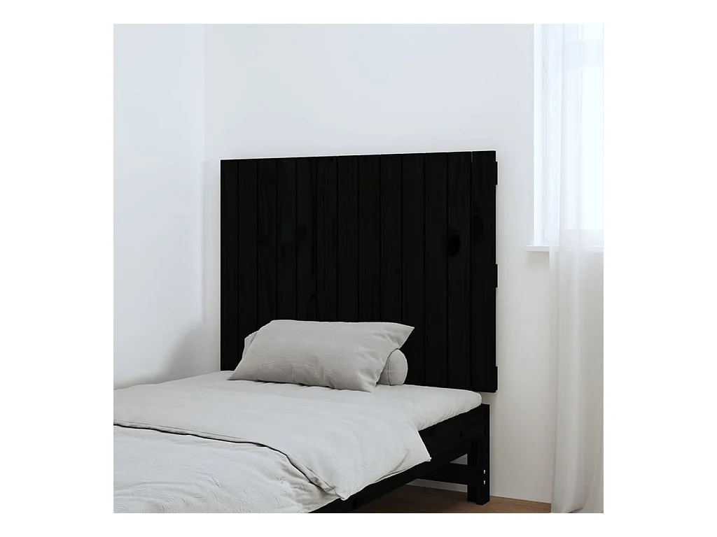 Cabecero de Cama | Cabezal de cama | Mueble de cabecero pared madera maciza pino negro 82,5x3x60 cm