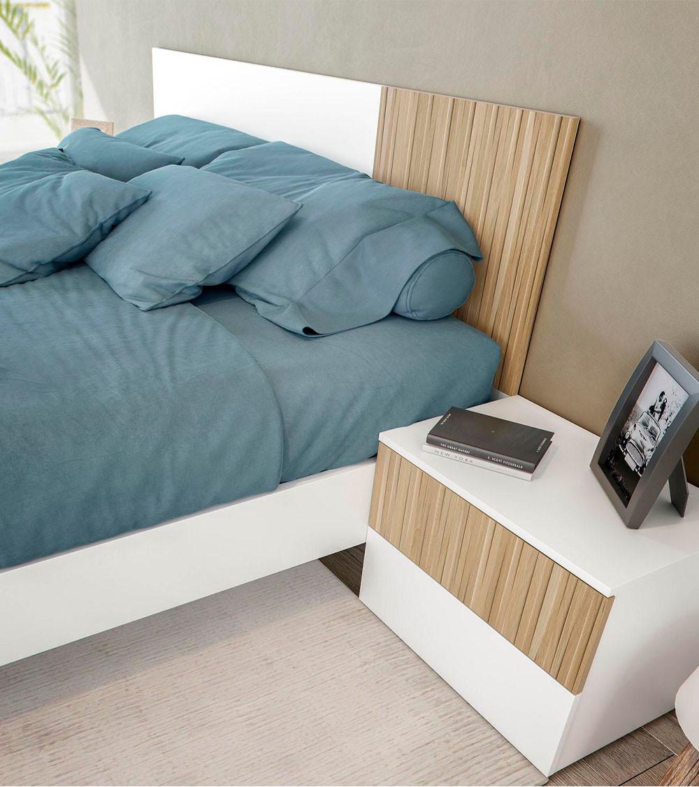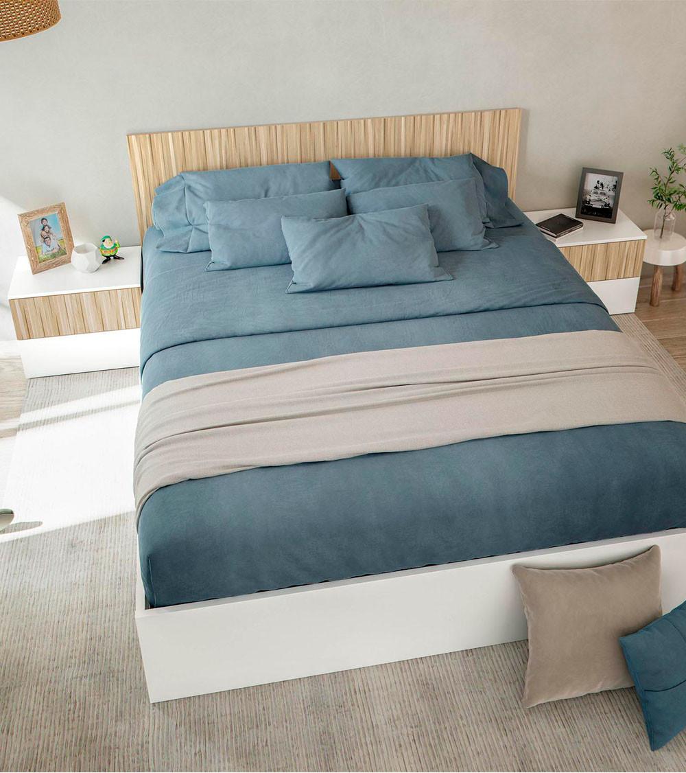 Pack de cabecero con 2 mesitas de noche de 127x260x35 cm en color blanco y beige Ébano