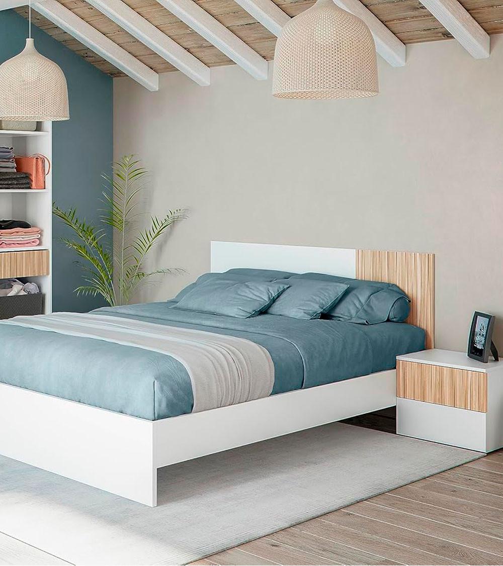 Cabecero de cama con 2 mesitas de 50x166x3 cm reversible de diseño nórdico en blanco Edith
