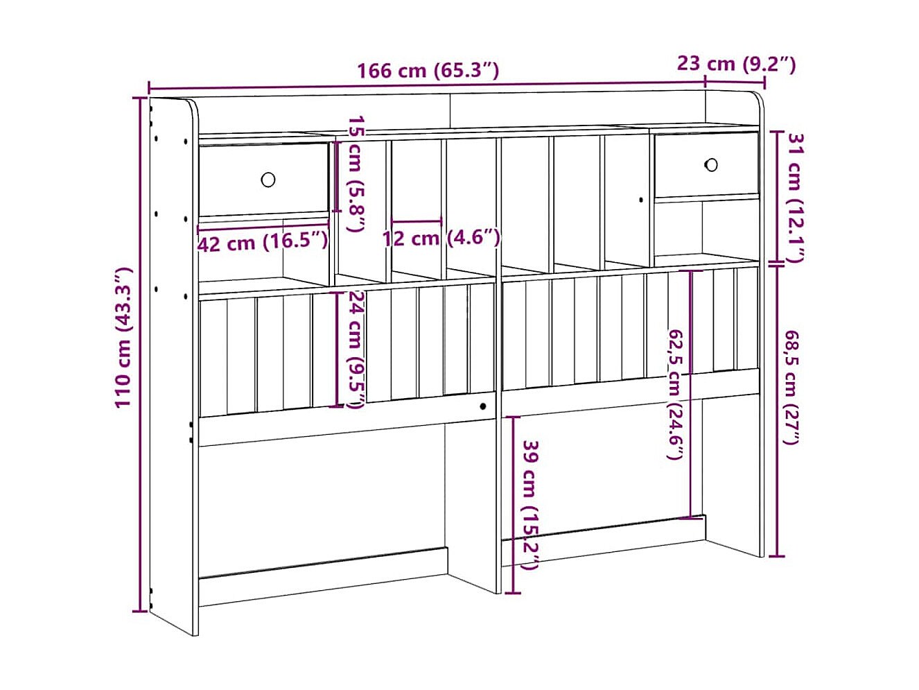• Dimensiones: 81 x 23 x 110 cm (ancho x profundo x alto)